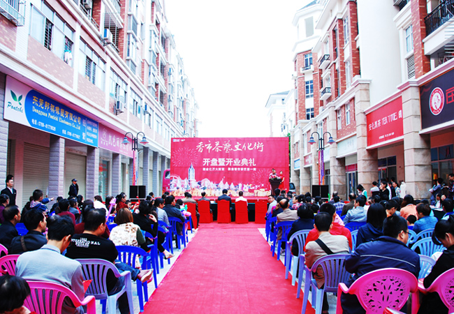 2012年初,“香市茶藝文化街”項目啟動前期籌劃工作,第一季度三正地產招商部多次走訪寮步及周邊鎮區,了解周邊茶藝市場經營情況。經對項目進行精準定位之后,決定茶藝街主要經營品類為茶葉及其產業延伸類商品和文化藝術品。3月,策劃方案完成報批,項目正式啟動。為盡快吸引商家的加盟,三正地產制定了相關優惠招商方案。5月正式啟動招商。