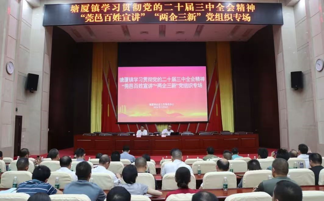 2024年9月8日上午,塘廈鎮舉行學習貫徹黨的二十屆三中全會精神“莞邑百姓宣講”“兩企三新”黨組織專場,邀請東莞市委黨...